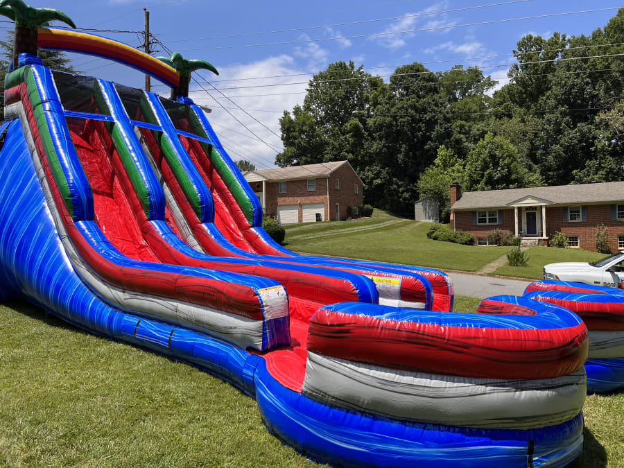 remember water slides need to be set up on grass , it can not be put on any hard surface