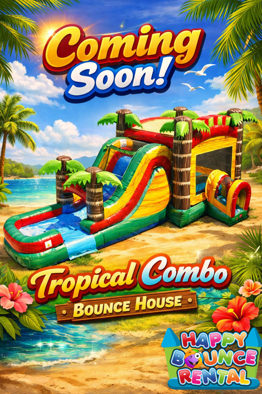 Bring tropical fun to your next party with our exciting Tropical Combo Bounce House! This inflatable features a spacious jumping area, climbing wall, and an exciting slide that keeps kids entertained for hours. The bright tropical theme makes it a perfect centerpiece for birthdays, backyard parties, school events, and summer celebrations.