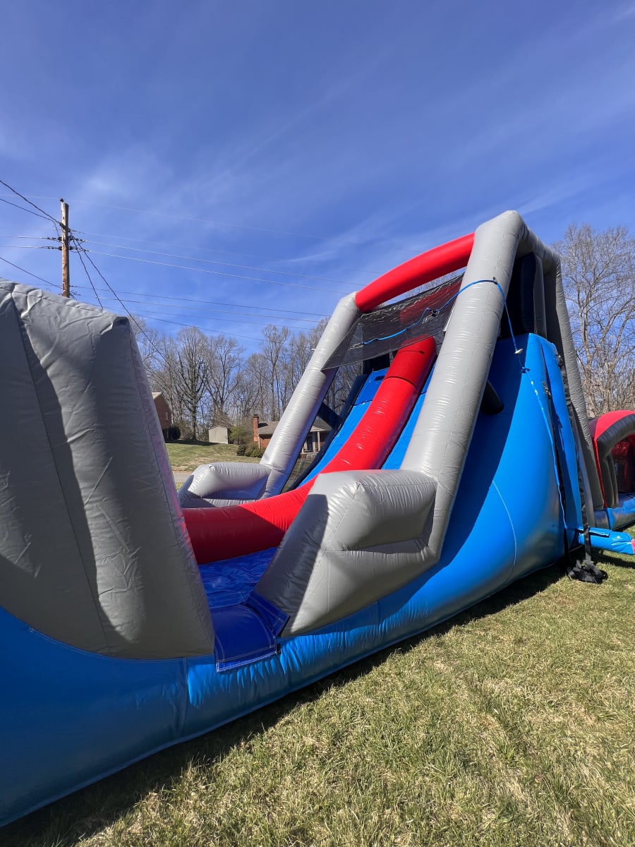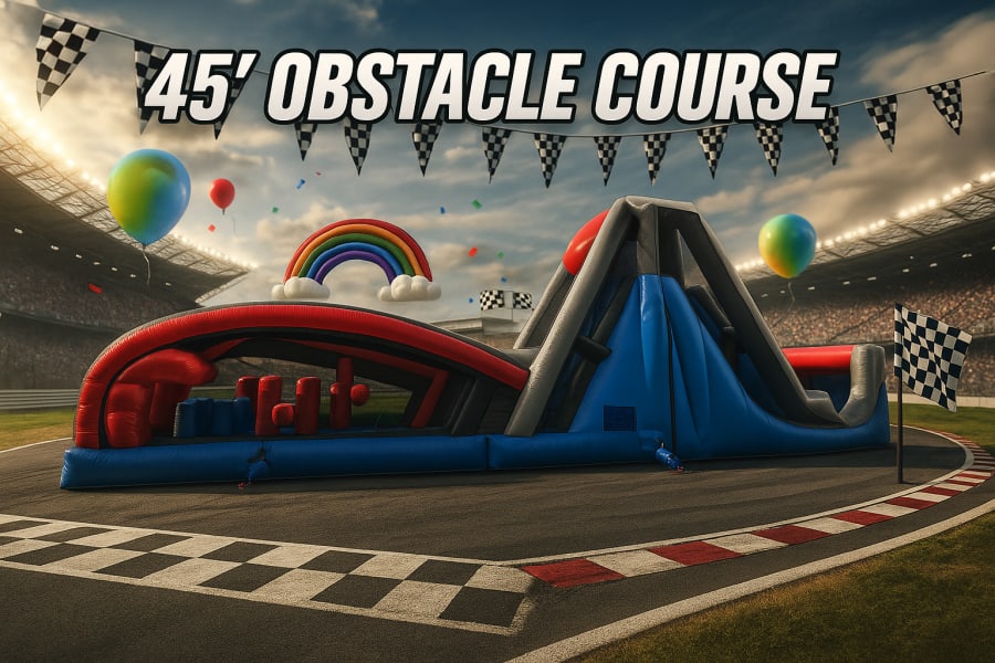 Get ready for the ultimate inflatable water slide adventure with our 45' Obstacle Course! 🌊🌟