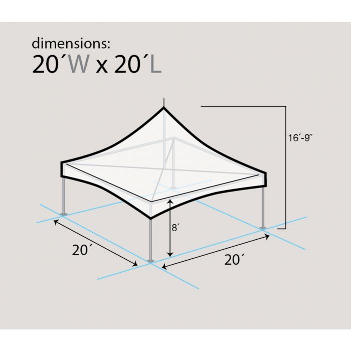 Whether you're hosting a wedding, corporate event, birthday party, or any other celebration, our high peak tent provides the perfect setting for your guests to enjoy. With its spacious 20x20 dimensions, this tent offers ample room for seating, dining, dancing, and more.