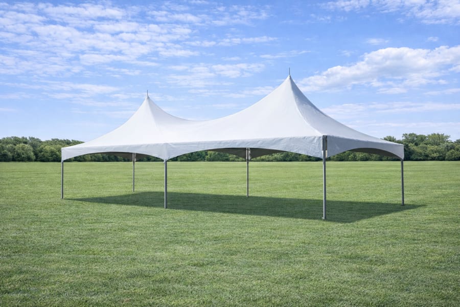 Our commercial-grade high peak tents are perfect for weddings, parties, graduations, corporate events, and backyard celebrations. These elegant white tents provide shade, weather protection, and a beautiful setup for any event.