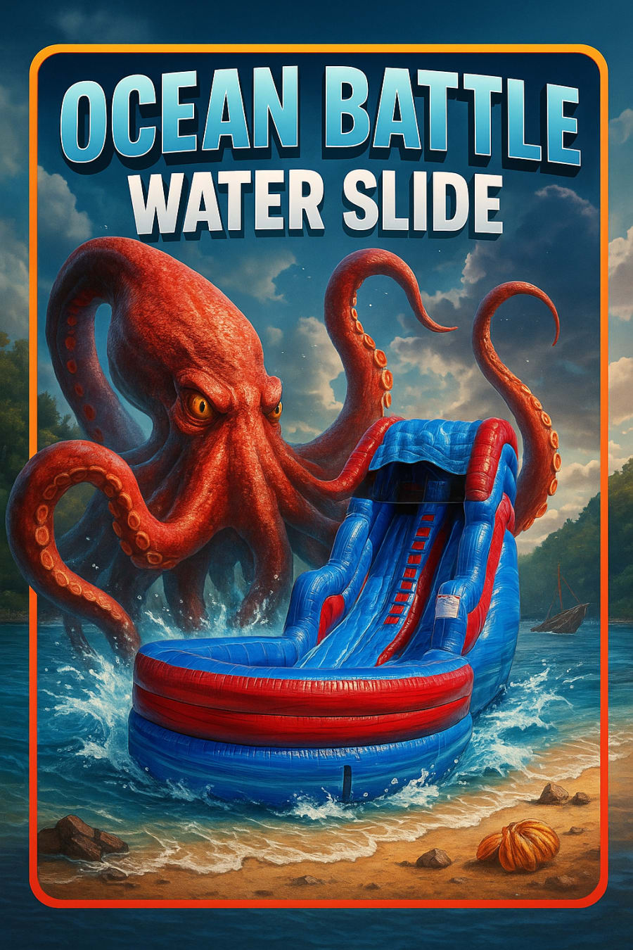 Make a splash at your next event with the 15ft Ocean Battle Water Slide! 🌊 This exciting inflatable slide is perfect for hot summer days, offering hours of fun for kids and adults alike. Whether you're hosting a backyard party, event, or community gathering, this water slide is sure to be a hit.